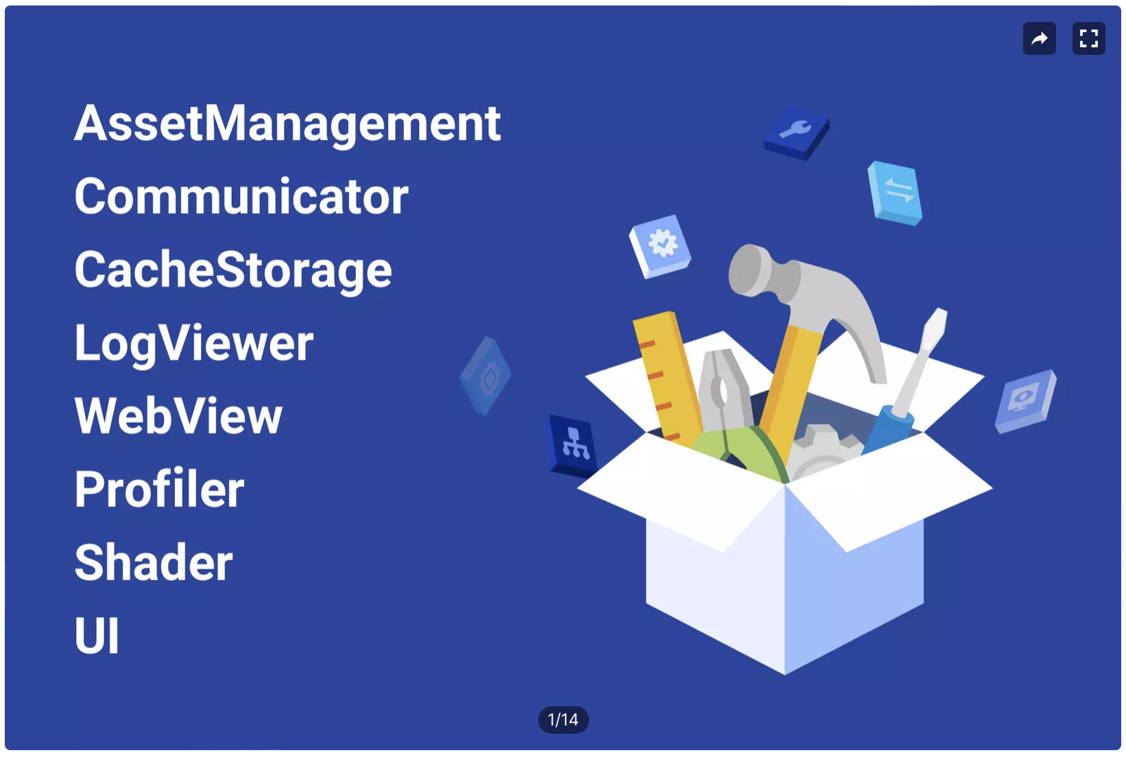 - Javascript 관련 기능 지원(Javascript 함수 호출 및 Unity 호출 지원)