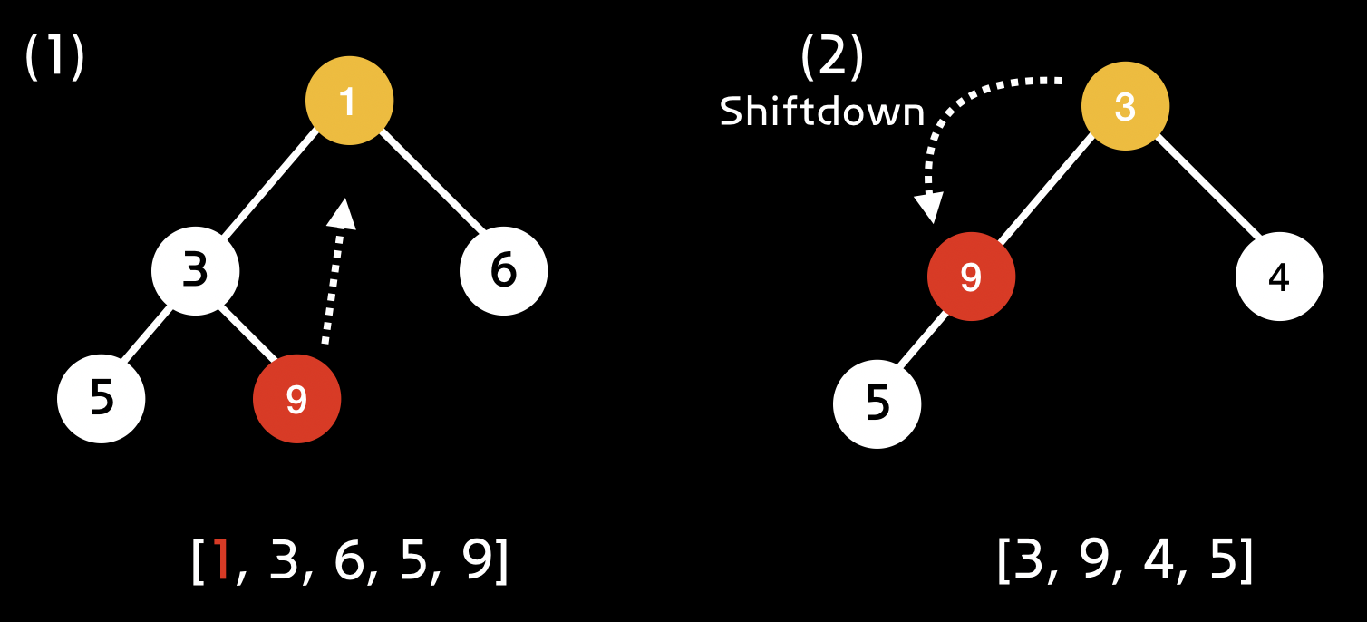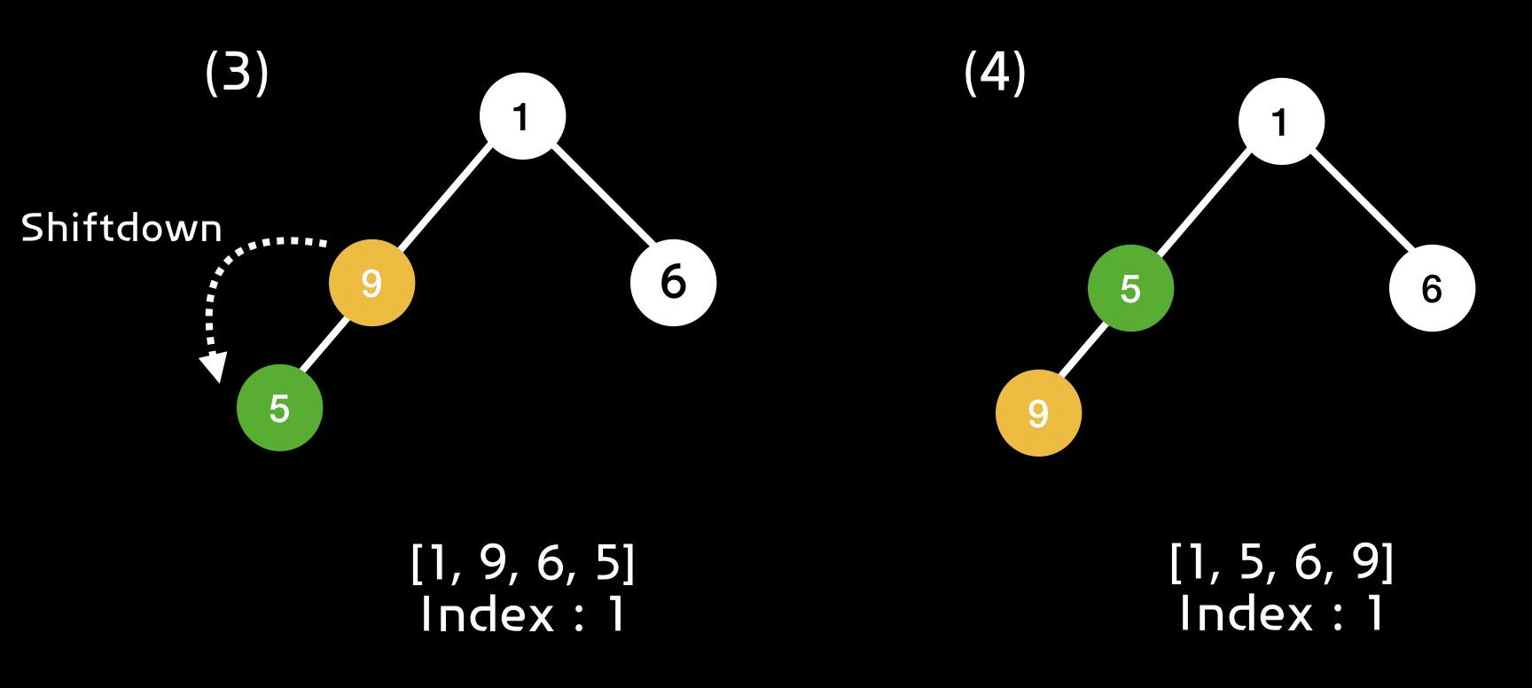 4. 최초 교체했던 인덱스 기준으로 ShifDown 정렬