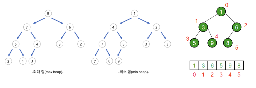 - 완전 이진 트리의 일종으로 우선순위 큐에서 활용