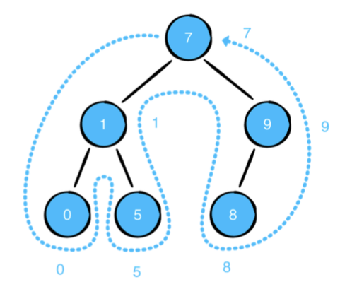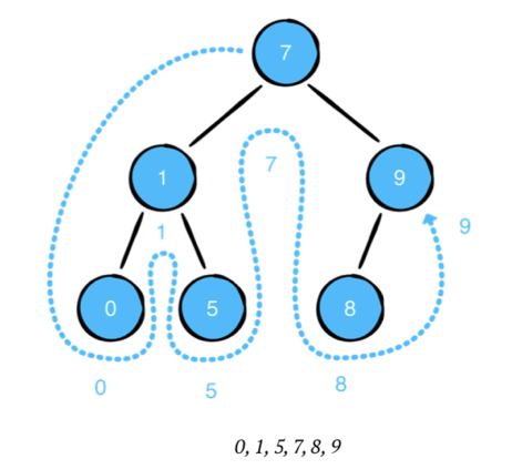 왼쪽 자식 노드-> 루트 노드 -> 오른쪽 자식 노드 순으로 순회하는 방식입니다.