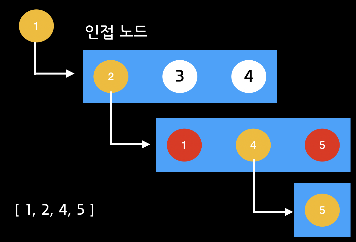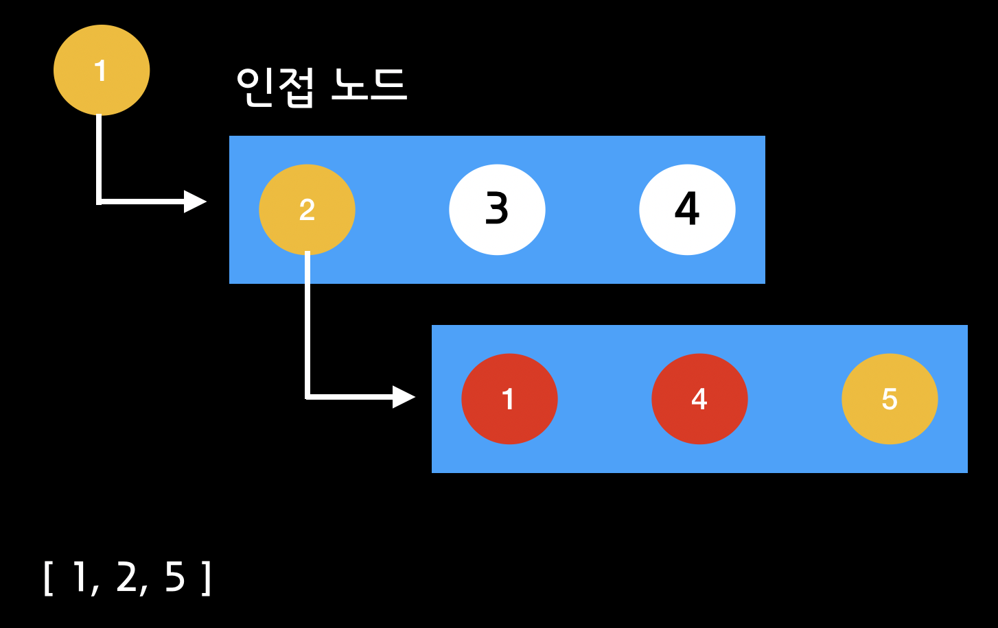 3. 꺼낸 노드와 인접한 노드가 있는지 확인한다.