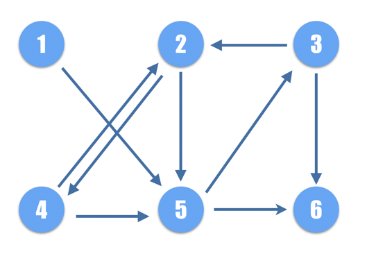 print(breadthFirstSearch(n: 6, edges: [(1,5), (2,4), (2,5), (3,2), (3,6), (4,2), (4,5), (5,3), (5,6)]))