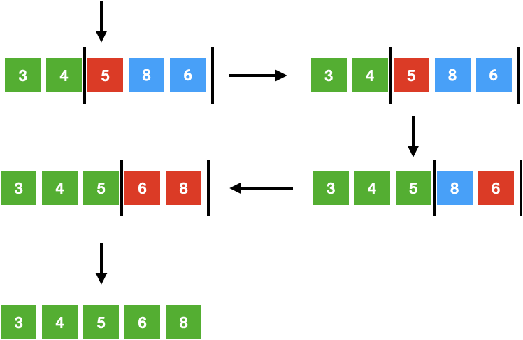 [ 8, 3, 5, 4, 6 ] 인 배열을 정렬한다고 생각해봅니다.