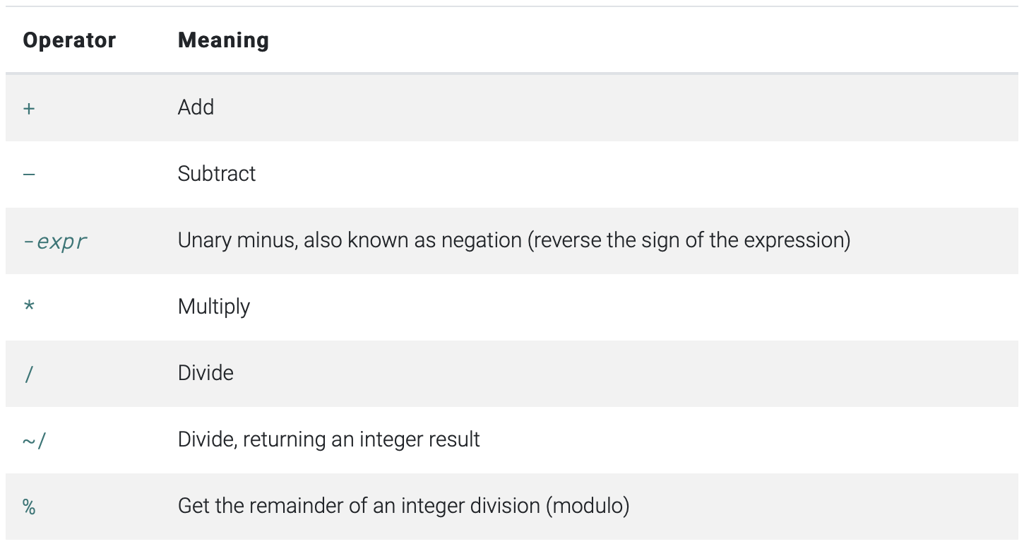 | multiplicative | * / % ~/ |