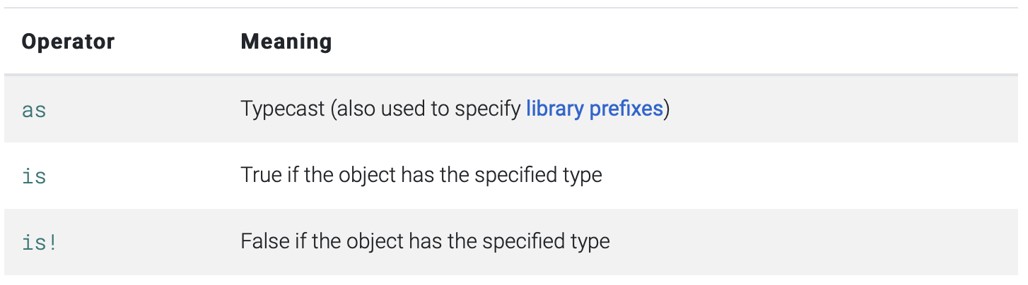 Dart에서는 아래의 기타 기능을 하는 연산자를 제공합니다.