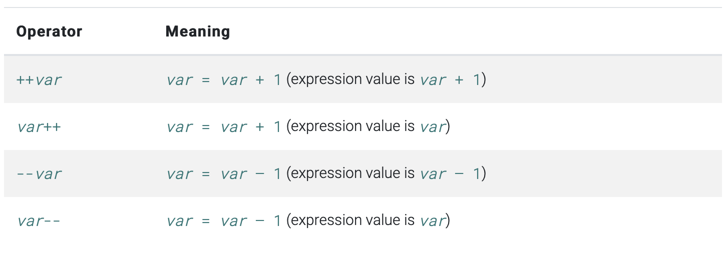 | unary prefix | -expr !expr ~expr ++expr --expr await expr |