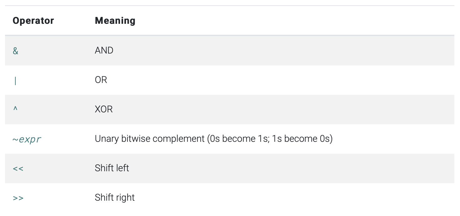 | bitwise XOR | ^ |