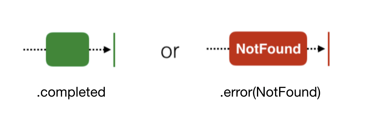 - 정확히 하나의 요소 또는 error를 방출합니다.